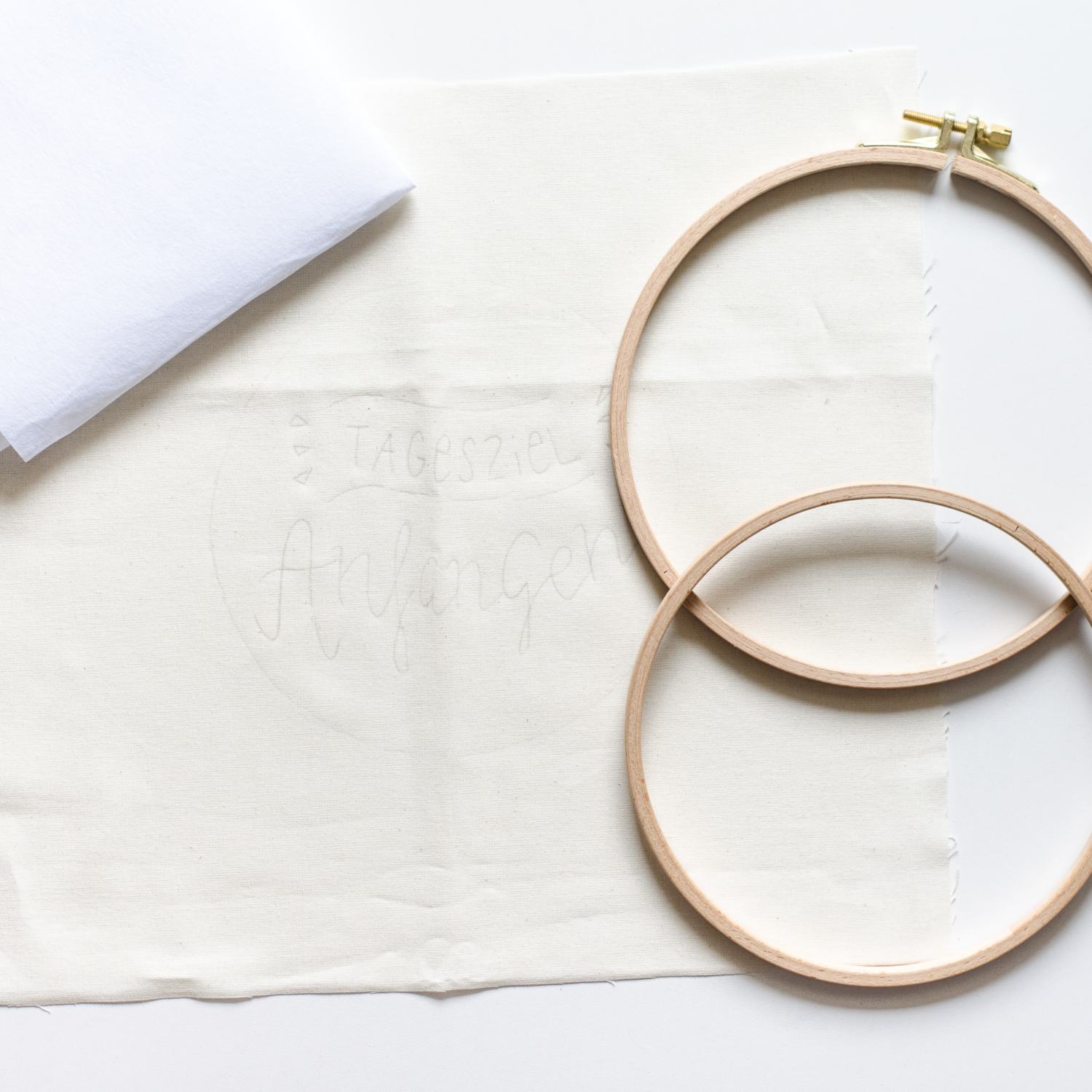 - Stickvorlage “Tageziel Anfangen”, ausgedruckt in der richtigen Größe oder eigenes Motiv entwerfen